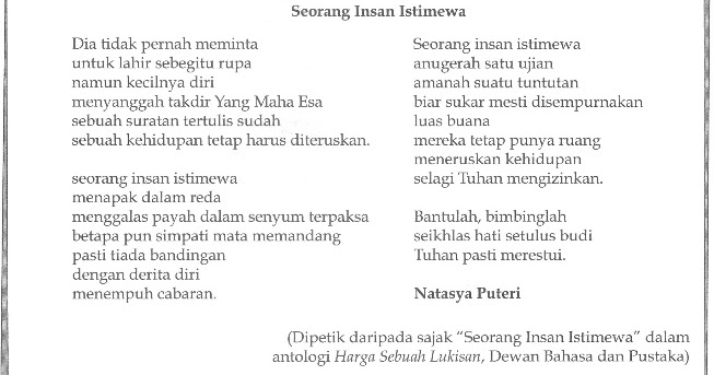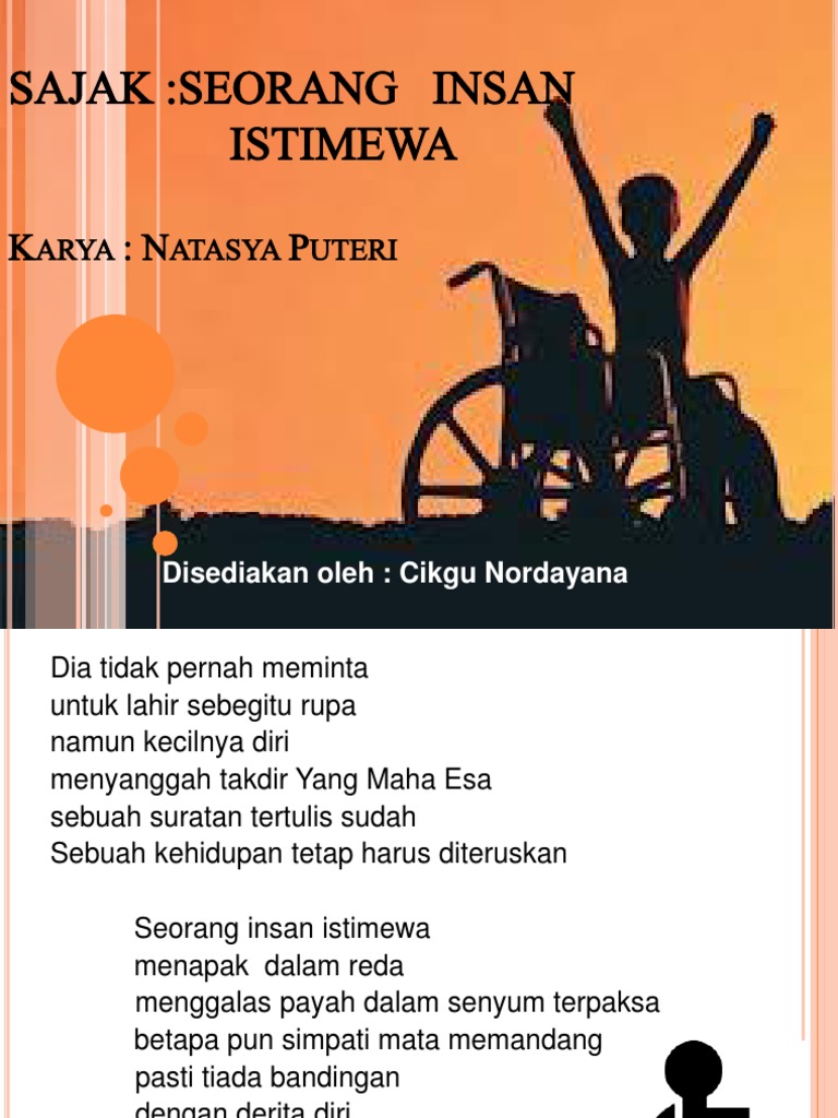 Sajak Seorang Insan Istimewa Oleh Natasya Puteri
