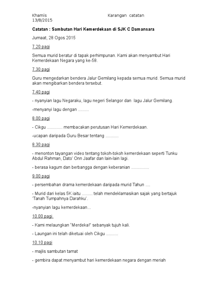 Contoh Karangan Laporan Sambutan Kemerdekaan Peringkat Sekolah