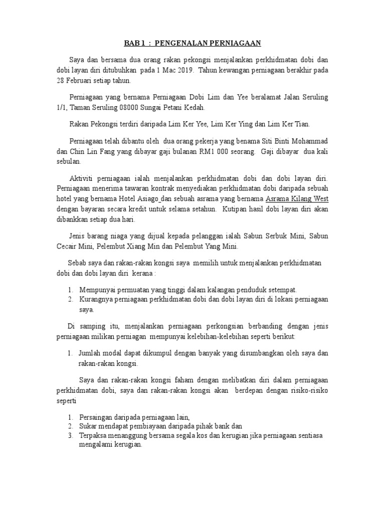 Bab 1 Pengenalan Perniagaan Bab 2 Profil Perniagaan Dan Ikatan Perniagaan Docx