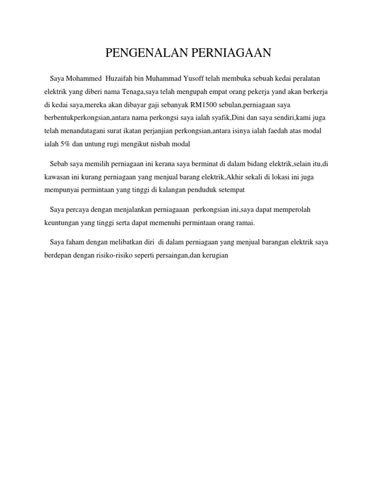 Contoh Pengenalan Dan Profile Perniagaan