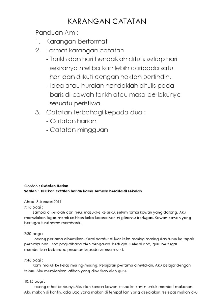 Sekolah Contoh Karangan Catatan Harian