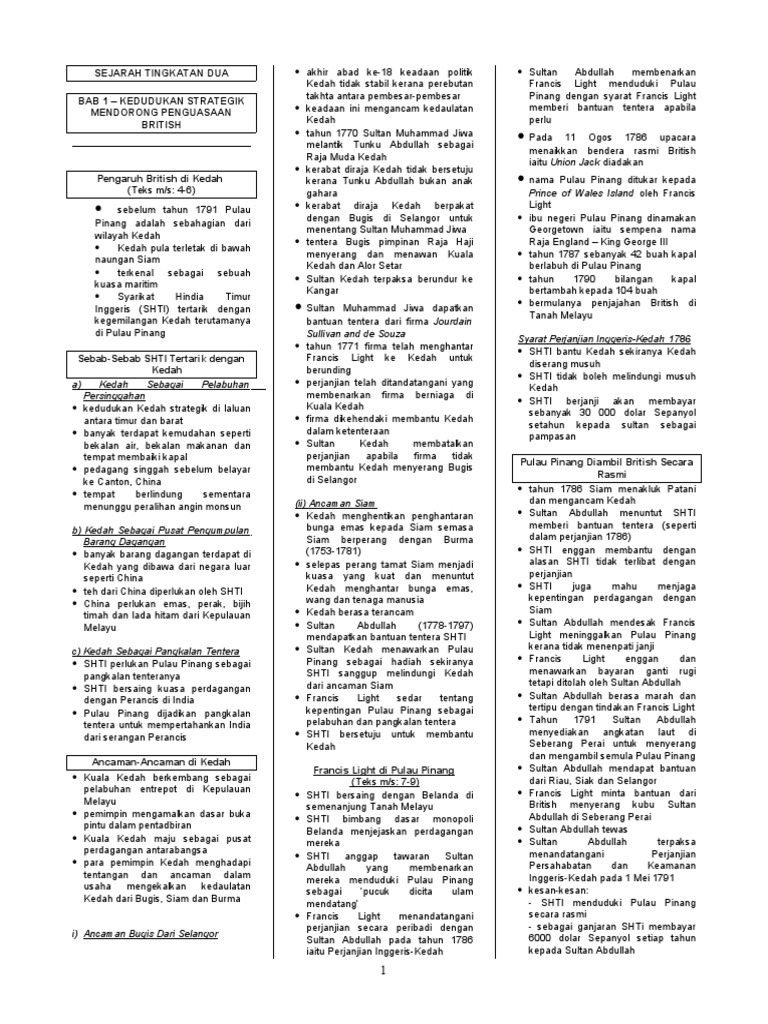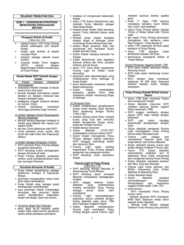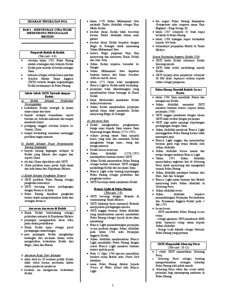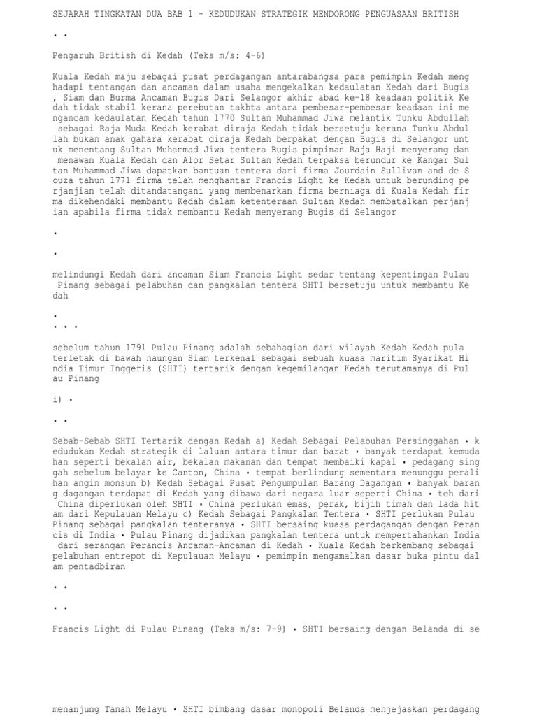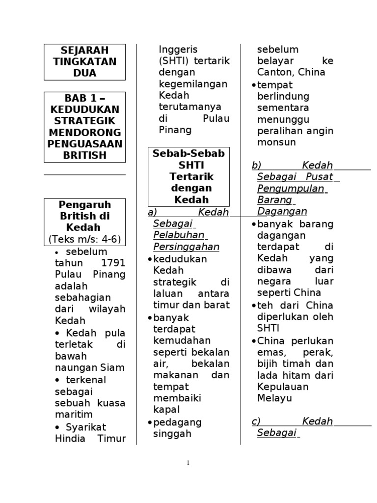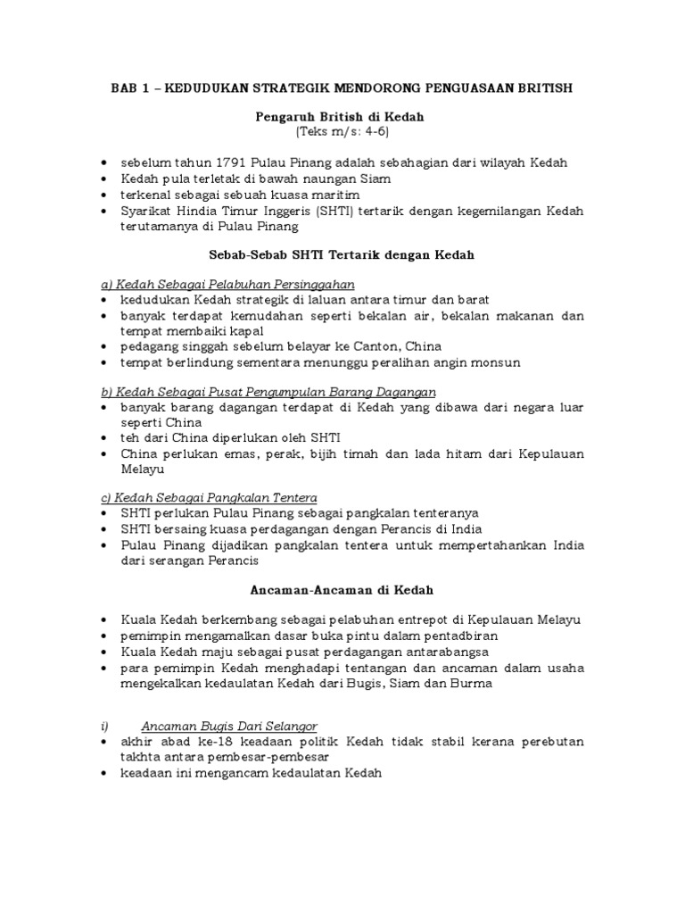 Sejarah Tingkatan Dua Bab 1 Kedudukan Strategik Mendorong Penguasaan British