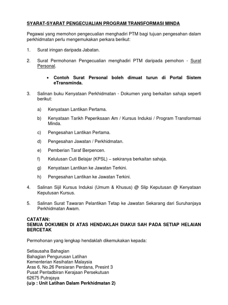 Borang Permohonan Pengecualian Daripada Menghadiri Semula Program Transformasi Minda Ptm