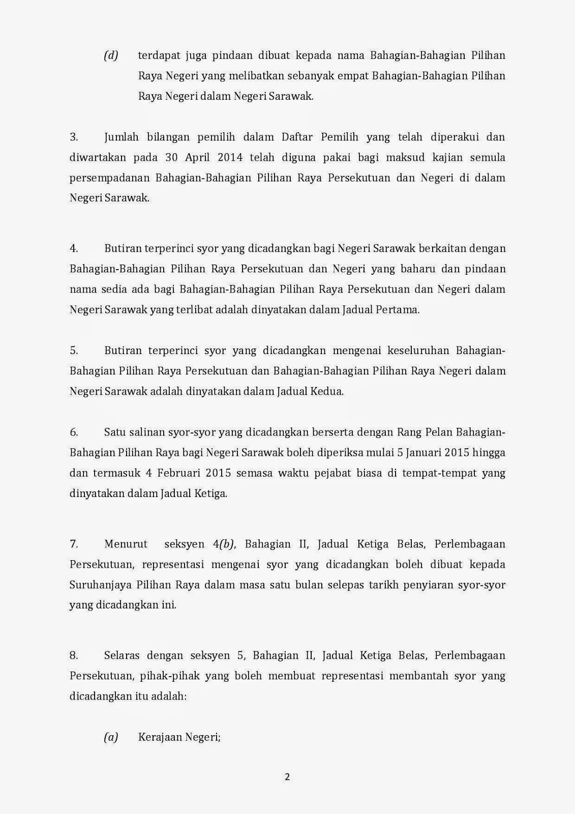 Persempadanan Semula Bahagian Pilihanraya Dun Sarawak Senarai Dun Baharu Dan Pindaan Nama Baca