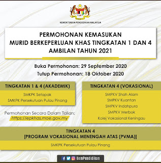 Permohonan Kemasukan Sekolah Khusus Tingkatan Satu Tingkatan Empat Tahun 2021 Edu Bestari