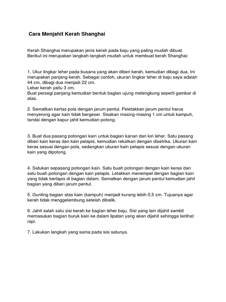 Cara Menjahit Kerah Shanghai