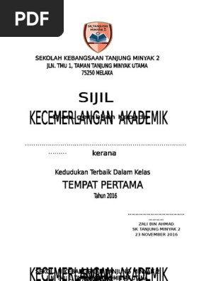 Contoh Sijil Pencapaian Kedudukan