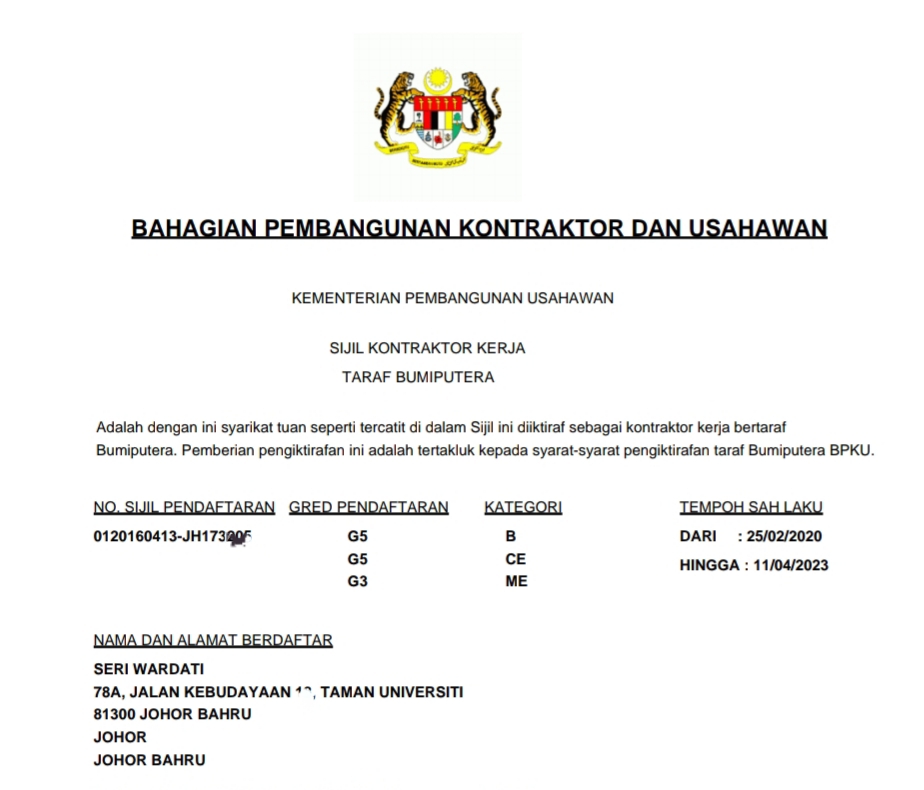 Dr Noorfajri Ismail On Twitter Wajah Baru Sijil Kontraktor Kerja Taraf Bumiputera Dengan Ciri Keselamatan Qr Code Memastikan Ketulenan Sijil Moworks Bpku Https T Co Cposov018t