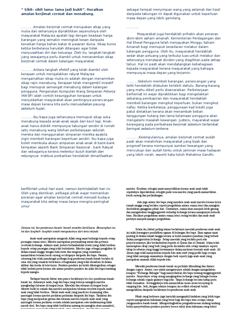 Sikit Sikit Lama Lama Jadi Bukit Huraikan Amalan Berjimat Cermat Dan Menabung