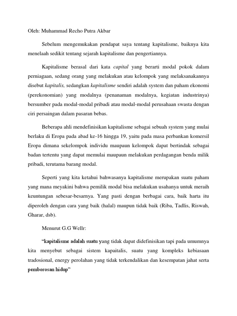 Perbandingan Sistem Ekonomi Islam Dan Sistem Ekonomi Kapitalis