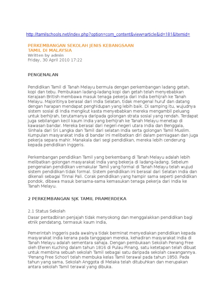 Perkembangan Sekolah Jenis Kebangsaan Tamil Di Malaysia