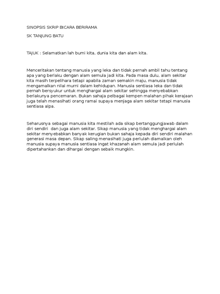 Sinopsis Skrip Bicara Berirama