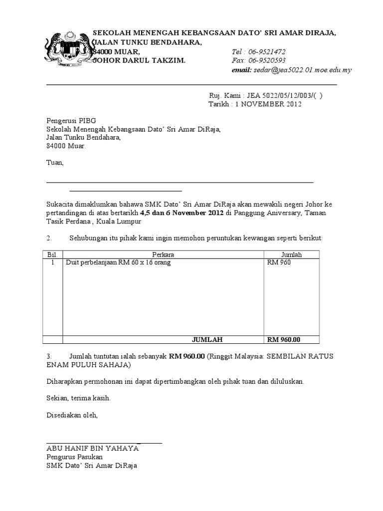 Surat Permohonan Bantuan Kewangan Pendidikan