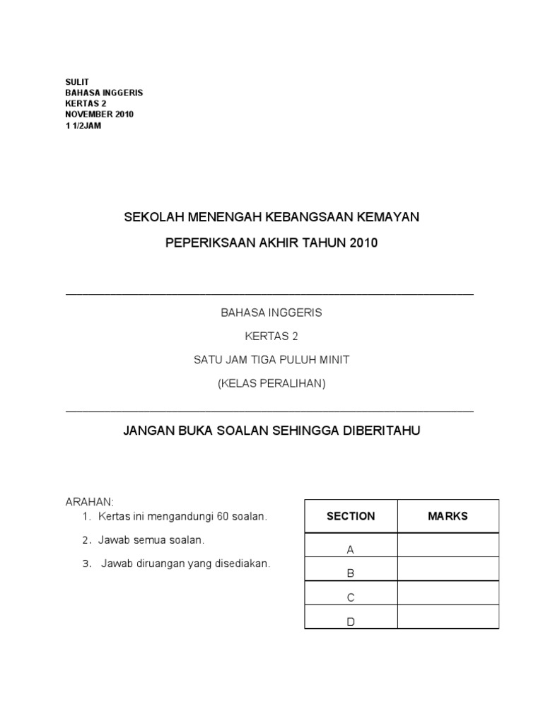 English Language Kssr Year 4 Paper 2 English Exam Papers English Language English Exam
