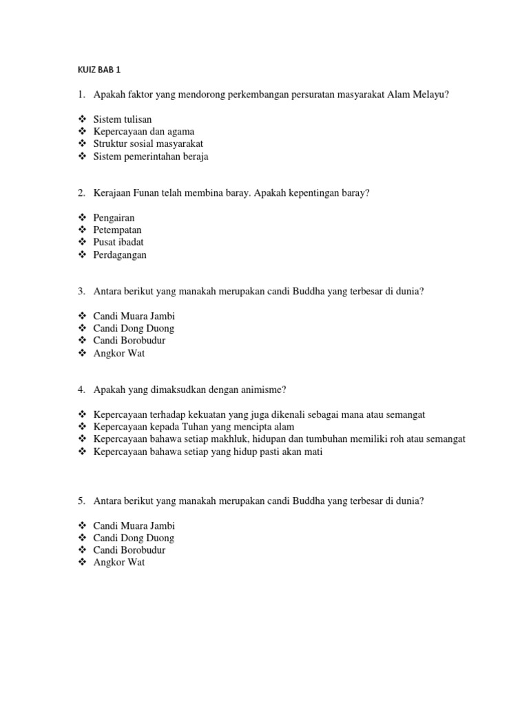 Soalan Sejarah Pat Tingkatan 2 Kssm