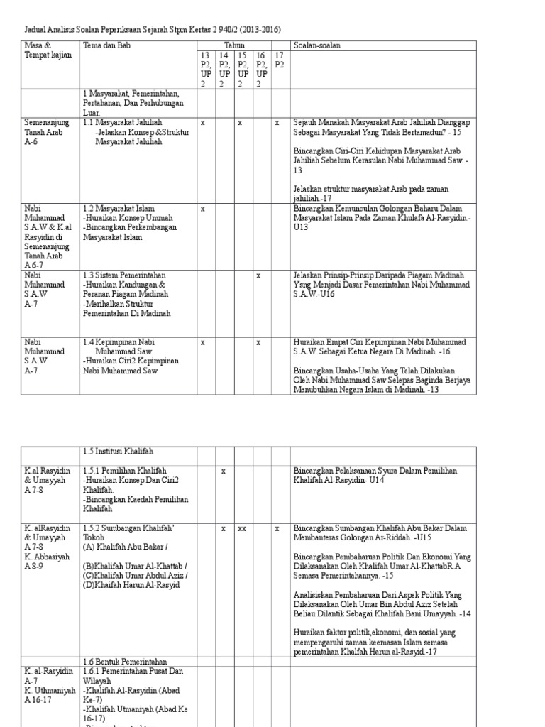Analisa P2 2017 New Docx Analisa Soalan Peperiksaan Stpm Penggal 2 Sejarah Islam 500 1918m P 2 13 Tema Dan Sub Tema U 13 P 2 14 U 14 P 2 15 U 15 P 2 Course Hero