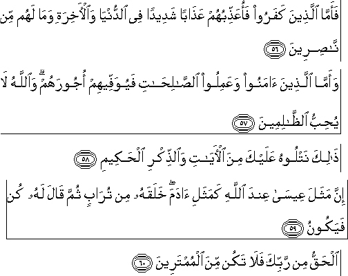 Surat Ali Imran Ayat 56 57 58 59 60 Dan Artinya Terjemahannya Alquran Surat Ayat