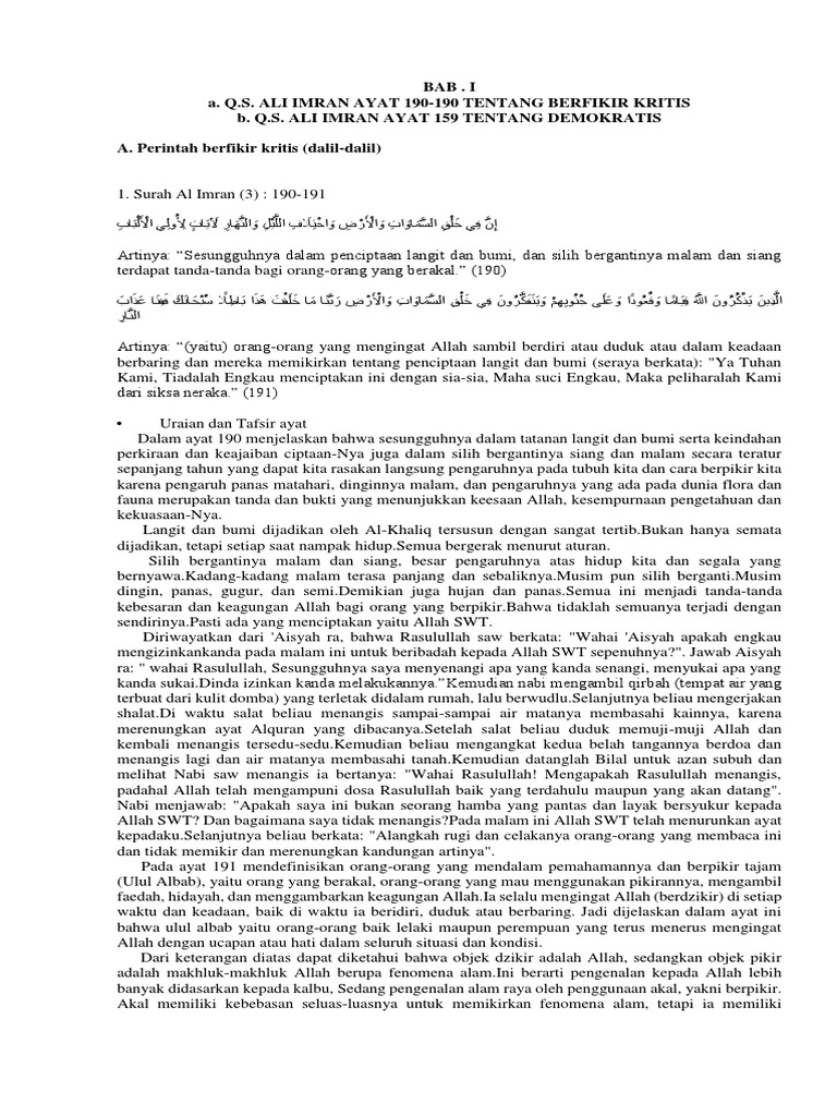 Surat Ali Imran 190 191 Dan Artinya Kumpulan Surat Penting