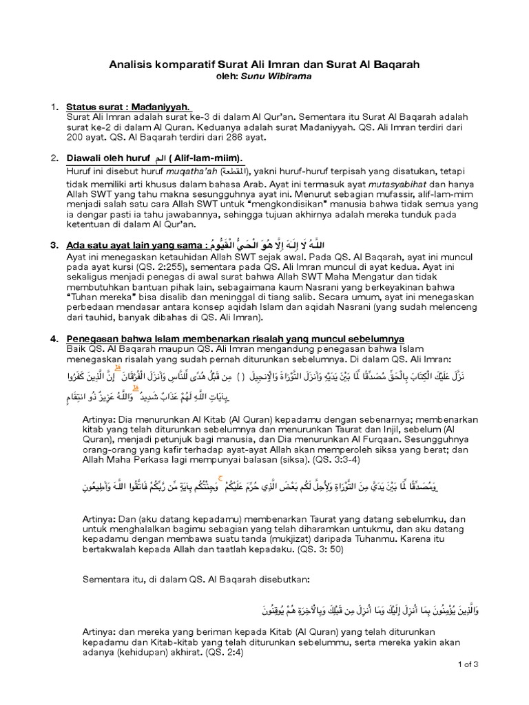 Analisis Komparatif Surat Ali Imran Dan Al Baqarah Surat Ismail