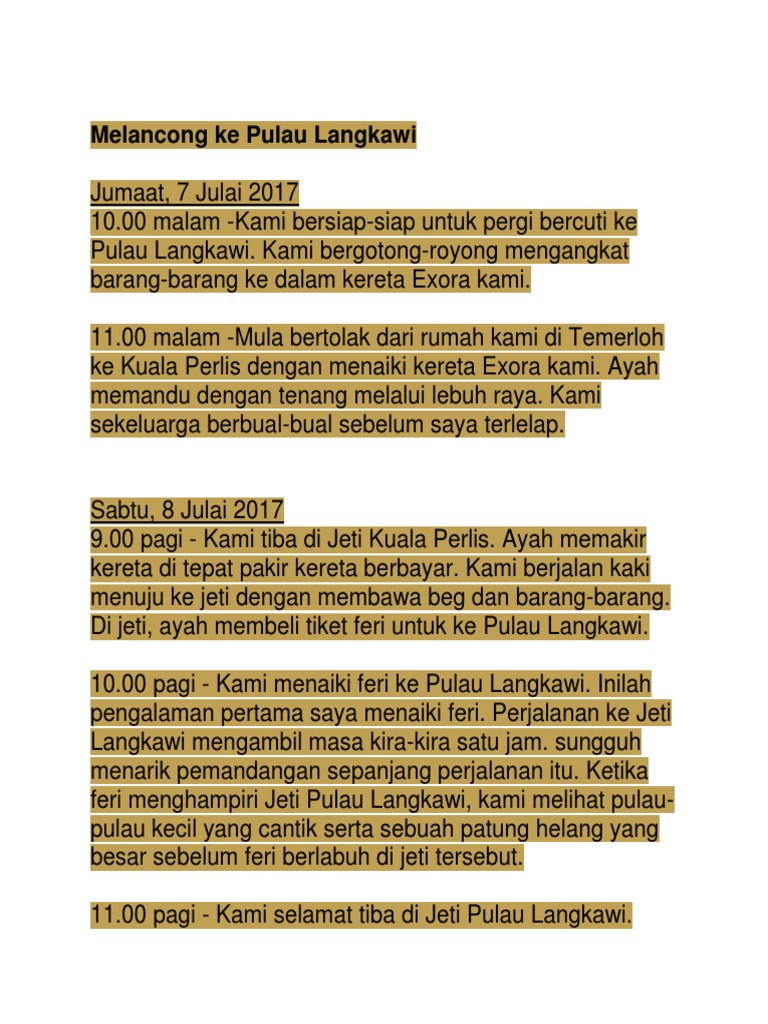 Contoh Contoh Karangan Sekolah Rendah Catatan Bercuti Di Pulau Langkawi