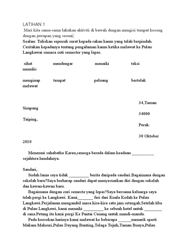 Contoh Surat Kiriman Tidak Rasmi Surat Ke Pulau Langkawi Kedah