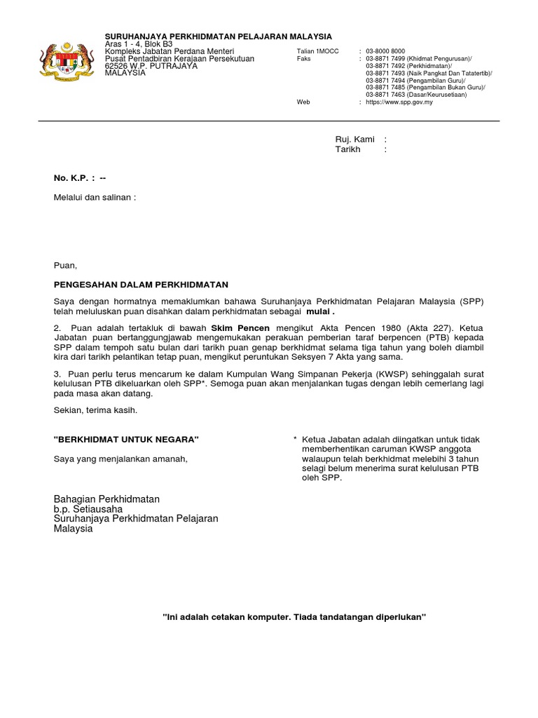 Surat Rasmi Pembatalan Kwsp J Kosong R