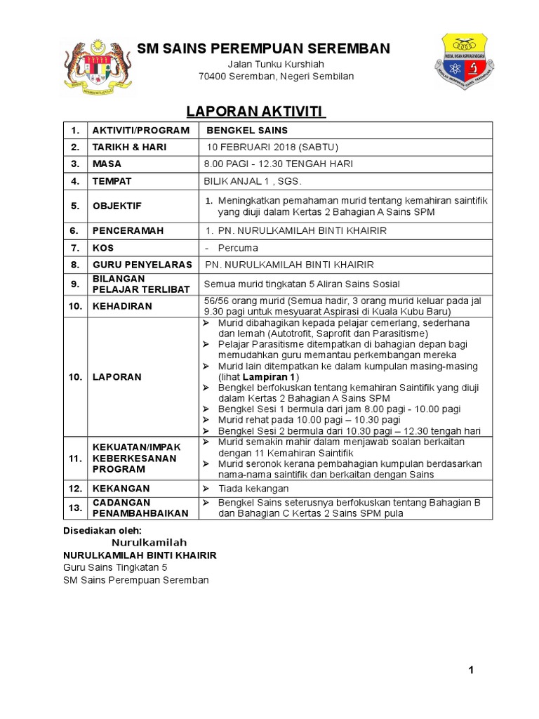 Laporan Bengkel Sains 10 Feb 2018 Doc