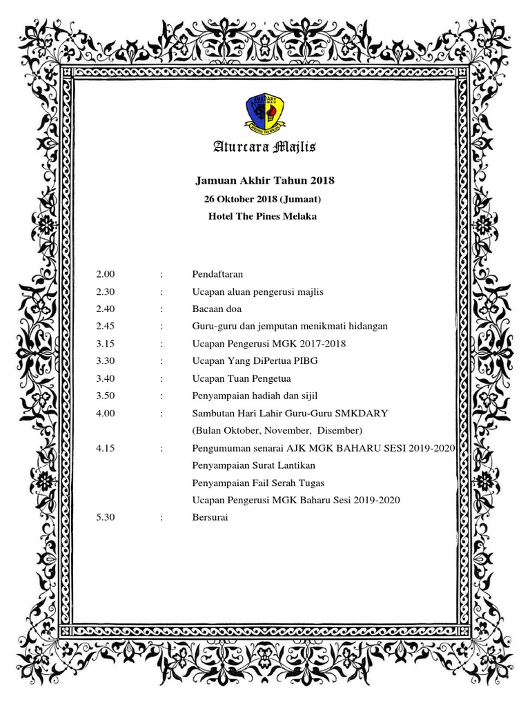 Aturcara Majlis Jamuan Hari Guru 2018 Docx