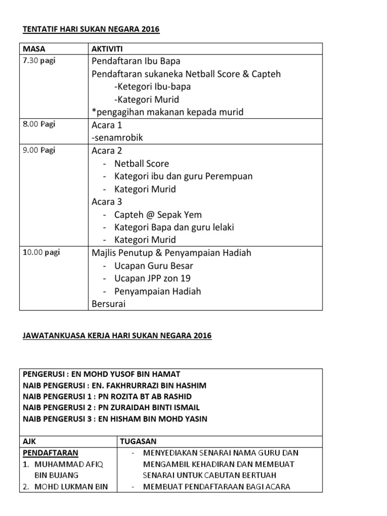 Kertas Kerja Hari Sukan Negara Peringkat Sk Skarok Oktober 2016