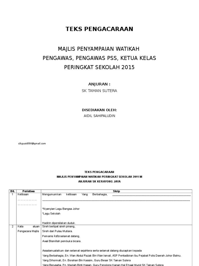 Doc Teks Pengacara Majlis Hari Anugerah Kecemerlangan Abe Jef Academia Edu