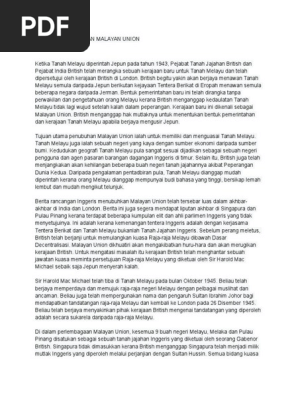 Golongan imigran sokong malayan union atas alasan yang sama 14. Malayan union telah dibentangkan di london pada 22 januari 1946. Orang melayu kecewa dengan kerajaan british kerana pecah amanah. Pendidikan awal di anderson school s ipoh dan inner temple england.