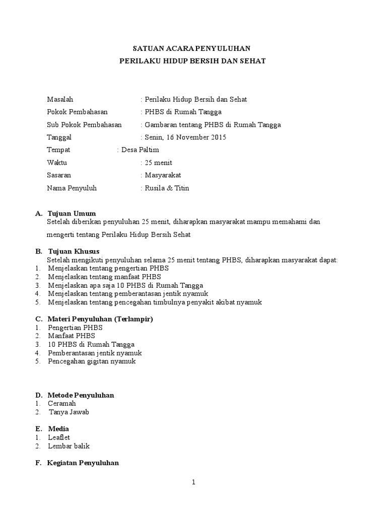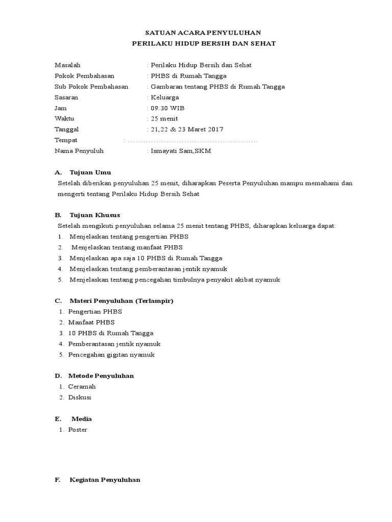 Doc Satuan Acara Penyuluhan Phbs Diano Tama Academia Edu