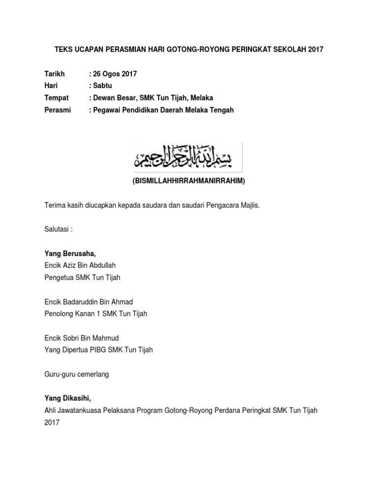 Teks Ucapan Perasmian Hari Gotong Royong Docx
