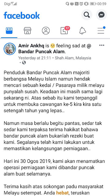 Pasaraya Muslim Ank Puncak Alam Terpaksa Ditutup Kerana Tiada Sambutan