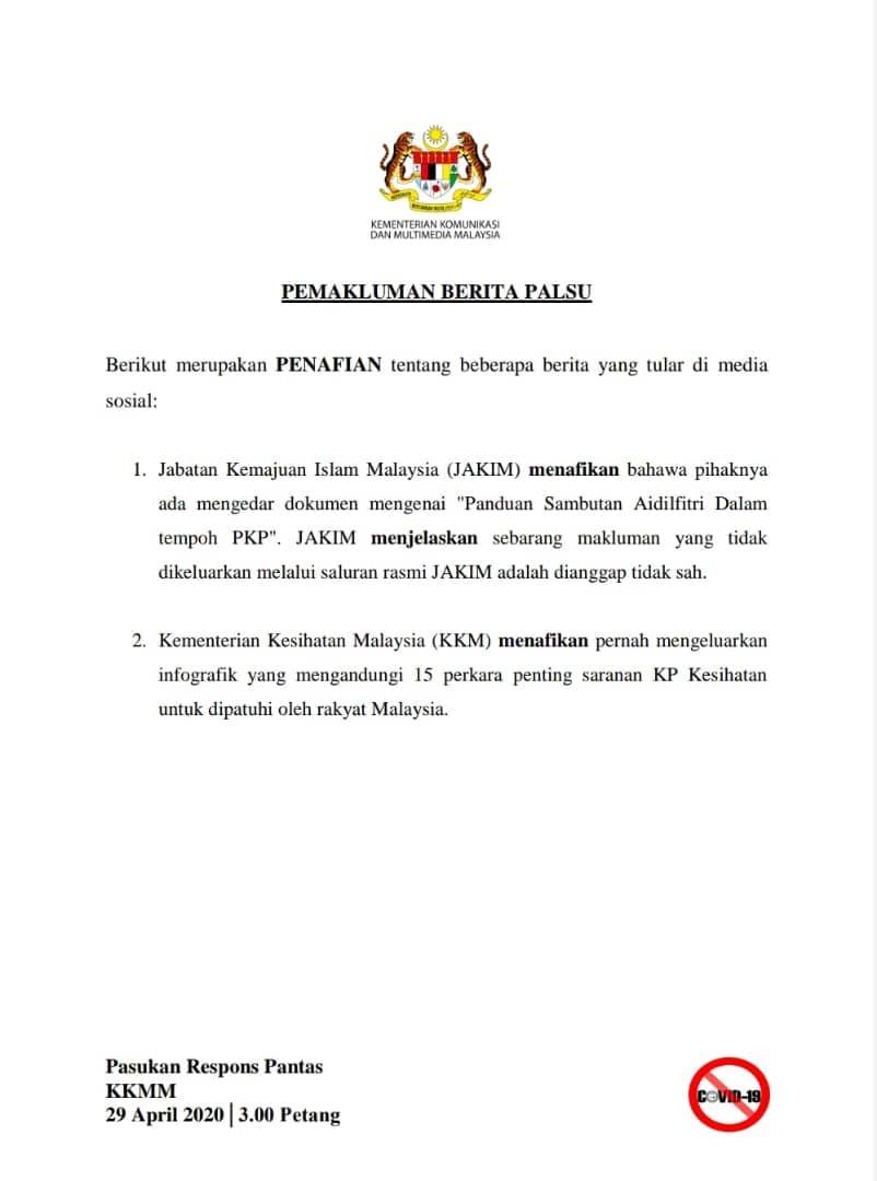 Pemakluman Berita Palsu 29 4 2020 Part Ii Pkp Covid19 Ramadankareem Ramadhan Ramadanmubarak Pdrm Gerakmalaysia Malaysia Mkn Kkm