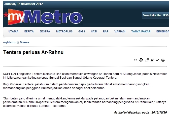 Jual Beli Emas Koperasi Koperasi Angkatan Tentera Malaysia Bhd Ada Ar Rahnu